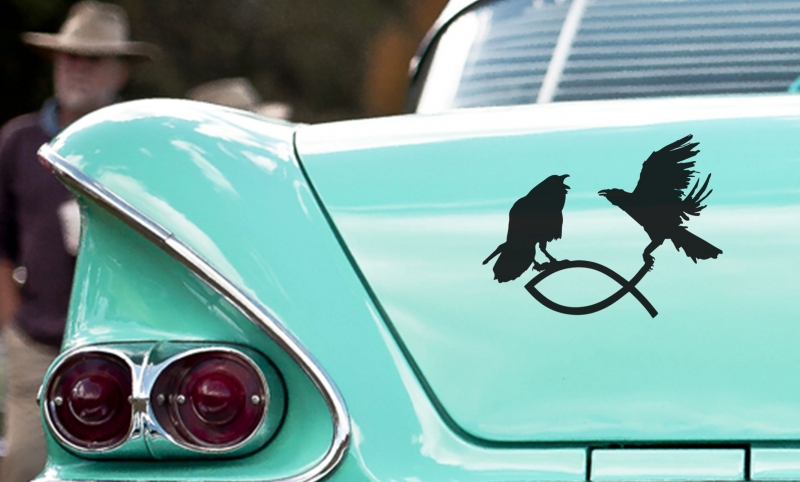 Raben greifen Christenfisch